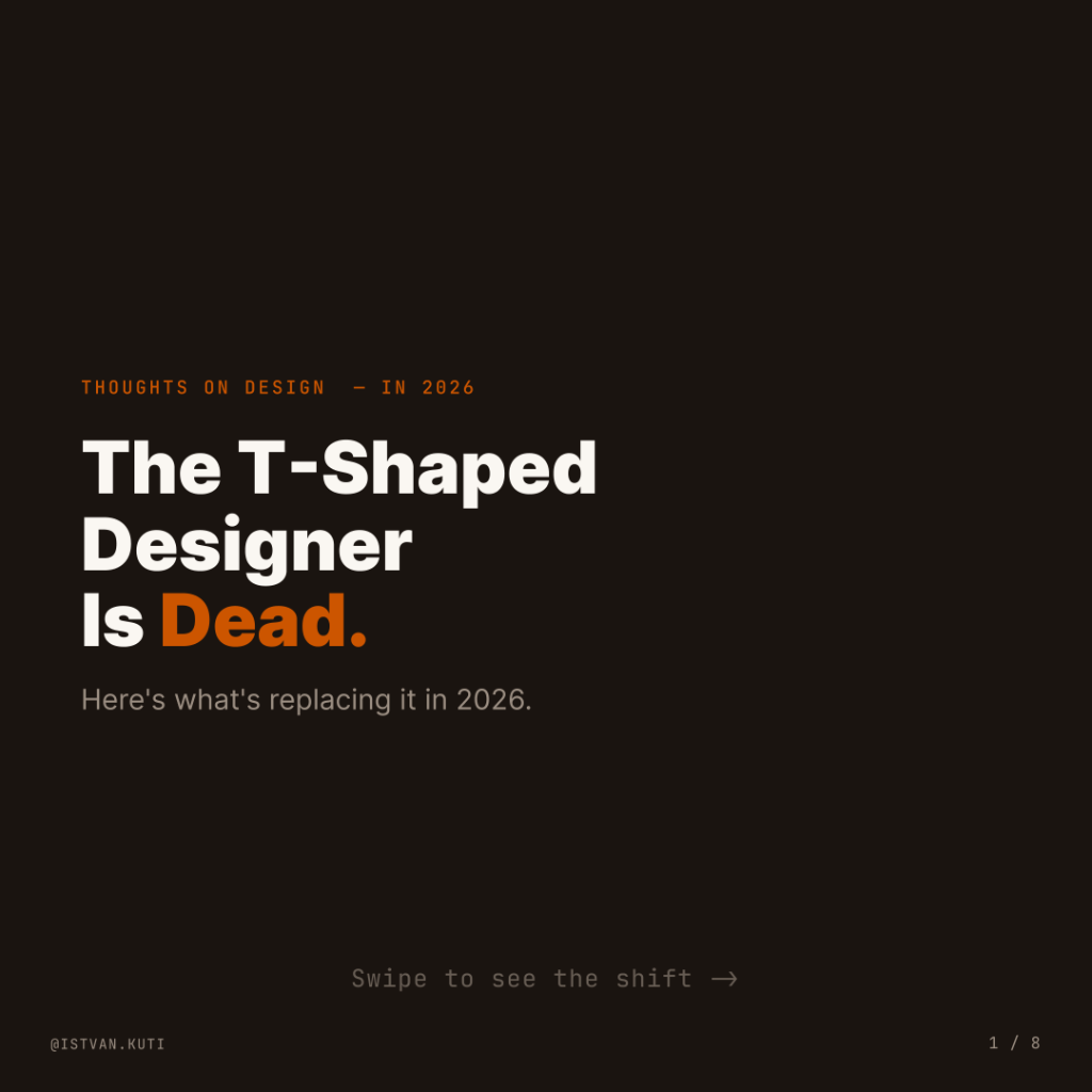 For twenty years, we celebrated T-shaped designers. The recipe was universally accepted: cultivate wide generalist knowledge across various disciplines, while developing one deep, penetrating specialization.