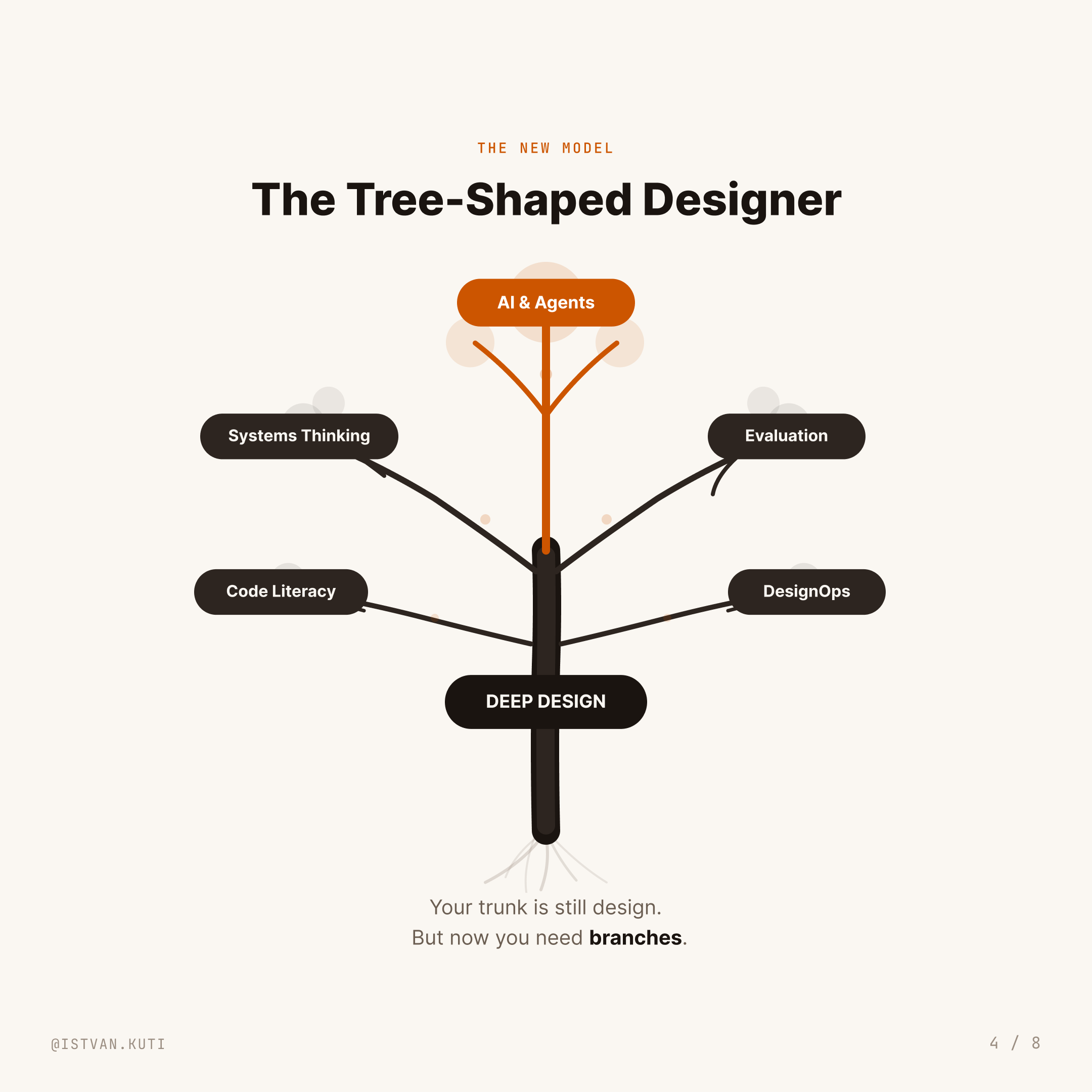 Your trunk is still design. Your core competency of understanding human needs and creating solutions hasn't changed. But now, you need branches.